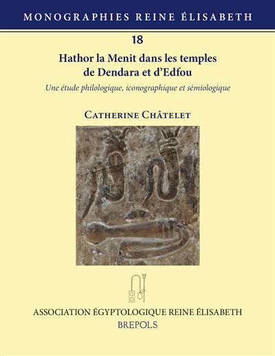 Cette recherche se positionne dans la continuité d’une première étude portant sur le collier-menit dans les temples ptolémaïques et publiée dans la collection Monographies Reine Élisabeth. Ce collier, qui est un des objets sacrés d’Hathor, porte également le nom de l’entité divine du même nom, forme d’Hathor de Dendara et d’Edfou dont cette étude fait l’objet. En tant que forme d’Hathor, quels sont les termes, les parures, les actions, la gestuelle, qui pouvaient la différencier de la grande Hathor, si toutefois cela est envisageable, ces deux divinités étant intimement associées ?