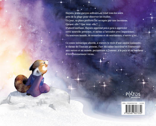 Hayato, jeune garçon solitaire, se rend tous les soirs près de la plage pour observer les étoiles. Un jour, sa place préférée est occupée par une inconnue. Qui est-elle ? Que veut-elle ? D’abord méfiant, Hayato apprend peu à peu à apprécier cette nouvelle présence, et même à l’attendre avec impatience. Un nouveau monde de sensations et de sentiments s’ouvre à lui… Ce conte initiatique aborde, à travers le récit d’une amitié naissante, le thème de l’instant présent, l’art du calme intérieur et l’ouverture aux autres et au monde, permettant à l’amour, à la paix et au bonheur d’être intensément vécus.