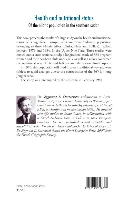 This book presents the results of a large study on the health and nutritional status of a significant sample of a southern Sudanese population belonging to three Nilotic tribes (Dinka, Nuer and Shilluk), realized between 1979 and 1984, in the Upper Nile State. Three studies were carried out : a cross-sectional study, a longitudinal study of 364 pregnant women and their newborn child until age 3, as well as a survey concerned the traditional way of life and believes and the socio-cultural aspects.