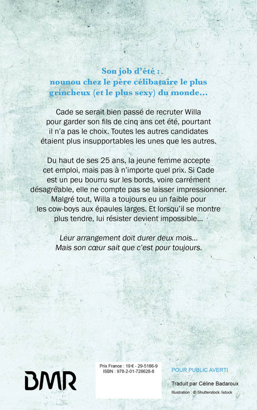 Cade se serait bien passé de recruter Willa pour garder son fils de cinq ans cet été, pourtant il n'a pas le choix. Toutes les autres candidates étaient plus insupportables les unes que les autres. Du haut de ses 25 ans, la jeune femme accepte cet emploi, mais pas à n'importe quel prix. Si Cade est un peu rude sur les bords, voire carrément désagréable, elle ne se laisse pas impressionner. Malgré tout, Willa a toujours eu un faible pour les cow-boys aux épaules larges. Et lorsqu'il se montre plus tendre, lui résister devient impossible…