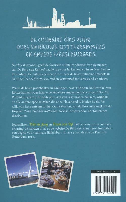 Wie is de beste pizzabakker in Kralingen, wat zijn de beste kookwinkels van Rotterdam en waar haal je de lekkerste ambachtelijke worsten. Wat is Zeemansboter en waar in Rotterdam is dat verkrijgbaar? Heerlijk Rotterdam geeft je dé beste adressen van restaurants, bakkers, wijnbars en alle andere speciaalzaken die onze Havenstad te bieden heeft. Per wijk, van het centrum tot Oude Westen, Provenierswijk tot Hillegersberg en Kop van Zuid: 'Heerlijk Rotterdam' loodst je dwars door de stad en net daarbuiten.