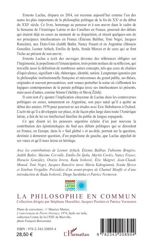 Ernesto Laclau (1935-2014) est reconnu aujourd’hui comme l’un des philosophes politiques principaux pour le XXIe siècle. Cet ouvrage poursuit les débats entrepris avec lui, et réunit quelques-uns de ses principaux interlocuteurs en France (Étienne Balibar, Toni Negri, Jacques Rancière), aux États-Unis (Judith Butler, Nancy Fraser) et en Argentine (Horacio González, Leonor Arfuch, Emilio de Ipola, Senda Sferco). Laclau a écrit des ouvrages devenus des références sur l’hégémonie, le populisme et l’émancipation. Longtemps ignorées par la philosophie institutionnelle et méconnues du grand public, ses thèses originales ont su perturber la scène contemporaine de la pensée politique. Son activité citoyenne en Argentine a fait de lui un intellectuel familier du public hispanophone. Ce que disent ici les penseurs argentins éclaire d’un jour nouveau la contribution des épistémologies du Sud aux débats politiques français et européens, mais aussi au-delà, portant sur la question d’un populisme de gauche que Laclau appelait de ses voeux et qu’il nous laisse en héritage.