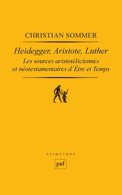 L'intérêt concret de Heidegger pour le christianisme dit primitif (Urchristentum) ou proto-christianisme se fixe autour de 1919. C'est le christianisme primitif qui lui a permis de mettre radicalement en question le « système du catholicisme » et la « philosophie aristotélico-scolastique » de ses années de formation. L'un des objectifs du jeune Heidegger est le développement d'une conceptualité théo-logique propre au premier christianisme du Nouveau Testament. Dans une préface à l'un de ses cours (1923) Heidegger écrit : « Celui qui m'a accompagné dans mes recherches était le jeune Luther et mon modèle était Aristote que le premier détestait ». La reprise croisée de ces deux sources alimente et constitue chez Heidegger la base d'une conceptualisation phénoménologique de certaines expériences juqu'alors impensées par la tradition théologico-philosophique. L'auteur étudie et examine la nature complexe de la conceptualité heideggerienne générée par ces deux matrices que sont pour lui Aristote et Luther.