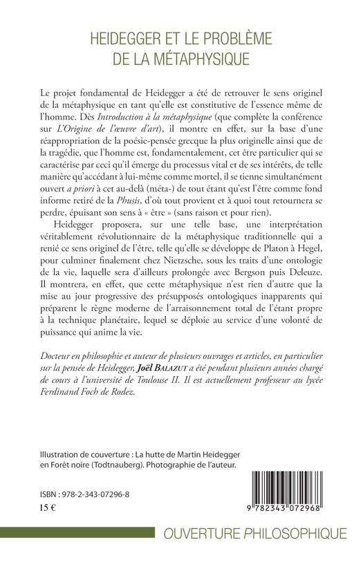 Dès 1935 Heidegger retrouve le sens originel de la métaphysique dans la conception présocratique de l'être comme "phusis". Sur cette base il va interpréter la métaphysique traditionnelle qui apparaît avec Platon pour culminer chez Nietzsche dans une ontologie de la vie et qui prépare le règne moderne de la technique planétaire, comme un "déni" radical de ce sens originel. L'un des intérêts de cette interprétation de la métaphysique, et non des moindres, est ainsi de rendre compte de la signification de la vogue actuelle des philosophies de la vie.