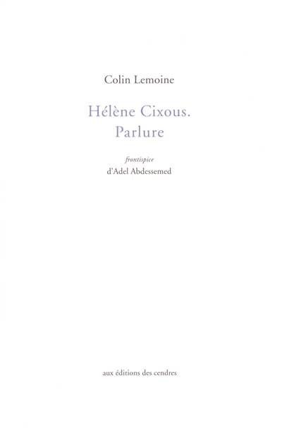 Un essai consacré à la voix littéraire d'H. Cixous. Tirage de tête à 210 exemplaires numérotés.