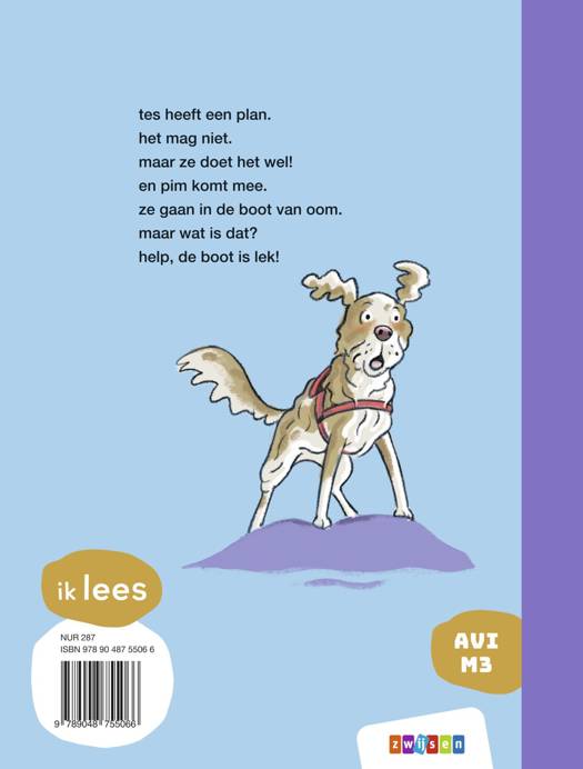 De leukste avonturen beleef je als je iets doet wat eigenlijk niet mag. Hoe spannend is het om stiekem in de boot van je oom te stappen met je vriend? Dat is wat Tes en Pim doen. Maar het natte avontuur loopt niet zoals verwacht. De boot is lek. En daar komen ze midden op het meer pas achter … Wat nu? Tes en Pim bedenken samen een oplossing. Want daar ben je vrienden voor.