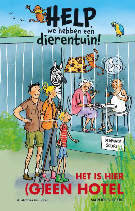 Het leven van Sem en zijn familie staat volledig op z'n kop sinds ze onverwachts eigenaar zijn geworden van een dierentuin. En het ziet ernaar uit dat het in hun dierentuin nog een stuk gezelliger gaat worden... Het tehuis waar meneer Pretorius woont heeft een flinke lekkage en het is er veel te heet. De bewoners hebben dus tijdelijk ander onderdak nodig. Maar waar moeten ze naartoe? Dan komt meneer Pretorius met het plan om hen te huisvesten in de dierentuin - er staan immers veel verblijven leeg en het is er een stuk koeler. Zo verandert de dierentuin in een echte mensentuin. Dit brengt Sem op een goed idee voor zijn schoolproject... Het is hier (g)een hotel! is het tweede deel in de grappige nieuwe serie van Marlies Slegers (van o.a. 'Gezocht: normale ouders'). De illustraties zijn gemaakt door Iris Boter (bekend van o.a. 'Juf Braaksel' en 'De DierenRidders').