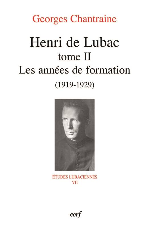 Ce deuxième volume est consacré aux années de formation philosophique et théologique. À Pâques 1920, Henri de Lubac a prononcé ses voeux : sa vocation, fondamentale, résistera aux doutes et aux souffrances. À Jersey (1920-1923) et à Mongré (1923-1924), il s'enthousiasme pour la philosophie et lit les grands auteurs (Platon, Thomas d'Aquin, Blondel, Rousselot, Gabriel Marcel), élaborant des dissertations très articulées. À Ore Place (Hastings) et à Lyon-Fourvière (1924-1928), il fixe déjà, approuvé par le père J. Huby, des idées essentielles sur le Surnaturel, dont celle de sa gratuité. Des amitiés fructueuses naissent avec des jeunes gens de sa génération qui dureront toujours. Celle, toute d'affection, avec Robert Hamel est essentielle (le P. Chantraine nous ouvre la correspondance échangée entre eux, qui révèle un lien très fort entre les deux hommes) celles aussi, plus intellectuelles, avec Yves de Montcheuil et Gaston Fessard ou encore, pour citer ceux de la génération précédente, Valensin et Teilhard de Chardin. Ces liens mettent en lumière une caractéristique du futur cardinal : la fidélité qui traverse le temps et les épreuves. Nous assistons ici à la naissance d'une pensée et d'une oeuvre très tôt structurées, et fondées sur une réflexion globale faisant toujours le lien entre théologie et philosophie, une oeuvre dont le P. Balthasar disait la « cohésion organique ». Henri de Lubac est ici montré dans sa volonté constante d'être utile à l'Église, et aussi en être sensible et souffrant.