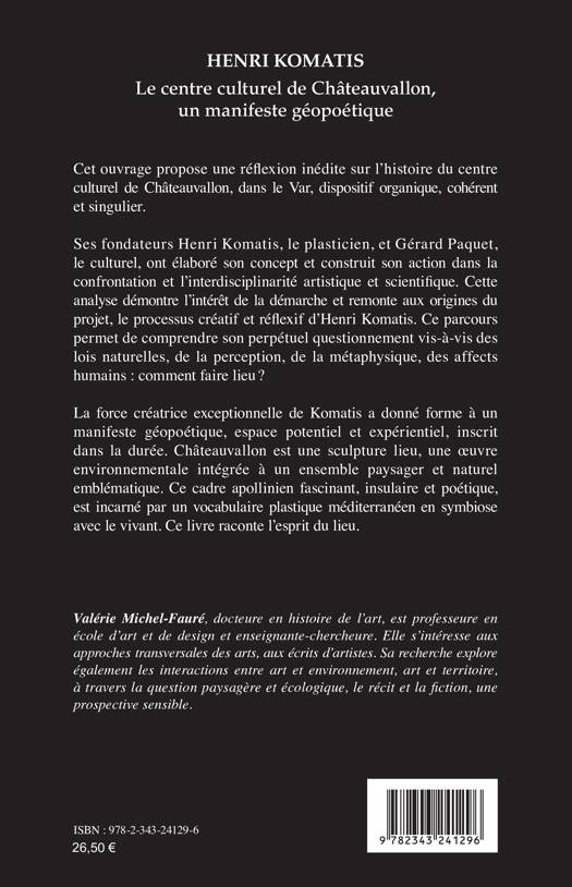 Cet ouvrage propose une réflexion inédite sur l'histoire du centre culturel de Châteauvallon, dans le Var, dispositif organique, cohérent et singulier. Ses fondateurs Henri Komatis, le plasticien, et Gérard Paquet, le culturel, ont élaboré son concept et construit son action dans la confrontation et l'interdisciplinarité artistique et scientifique. Cette analyse démontre l'intérêt de la démarche et remonte aux origines du projet, le processus créatif et réflexif d'Henri Komatis. Ce parcours permet de comprendre son perpétuel questionnement vis-à-vis des lois naturelles, de la perception, de la métaphysique, des affects humains: comment faire lieu ? La force créatrice exceptionnelle de Komatis a donné forme à un manifeste géopoétique, espace potentiel et expérientiel, inscrit dans la durée. Châteauvallon est une sculpture lieu, une oeuvre environnementale intégrée à un ensemble paysager et naturel emblématique. Ce cadre apollinien fascinant, insulaire et poétique, est incarné par un vocabulaire plastique méditerranéen en symbiose avec le vivant. Ce livre raconte l'esprit du lieu.