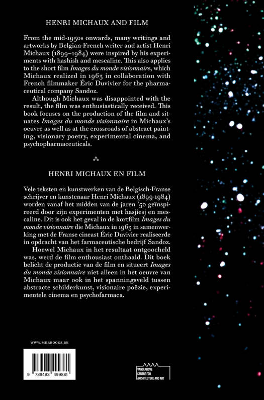 Daarnaast omvat dit Nederlands- en Engelstalige boek bij de gelijknamige tentoonstelling (5 maart - 23 mei 2026) in het VANDENHOVE Centrum voor Architectuur & Kunst te Gent diverse aquarellen, litho's en tekeningen van Michaux. Ook bevat het boek de originele synopsis, voice-over en regie-aanduidingen van Michaux in het Frans. Het resultaat is een meertalig en gelaagd kunstboek dat focust op en reflecteert over het veelzijdige oeuvre van Michaux en de verschillende media van zijn kunst, maar toch vooral met aandacht voor die ene film: Images du monde visionnaire.