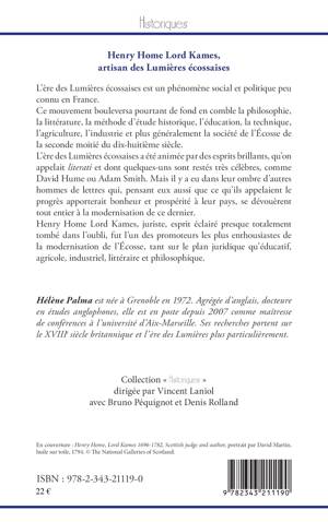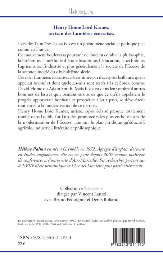 Phénomène social et politique peu connu en France, l'ère des Lumières écossaises a été animée par des esprits brillants, qu'on appelait literati et dont quelques-uns sont restés très célèbres, comme David Hume ou Adam Smith. Mais il y a eu dans leur ombre d'autres hommes de lettres qui, pensant eux aussi que ce qu'ils appelaient le progrès apporterait bonheur et prospérité à leur pays, se dévouèrent tout entier à la modernisation de ce dernier. Henry Home Lord Kames, juriste, esprit éclairé presque totalement tombé dans l'oubli, fut l'un des promoteurs les plus enthousiastes de la modernisation de l'Écosse, tant sur le plan juridique qu'éducatif, agricole, industriel, littéraire et philosophique.