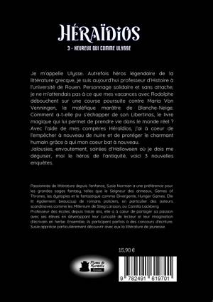 Je m'appelle Ulysse. Autrefois héros légendaire de la littérature grecque, je suis aujourd'hui professeur d'Histoire à l'Université de Rouen. Il y a bien longtemps, j'ai navigué sur les mers, défié des dieux, et survécu à mille périls pour rentrer chez moi. Mais rien ne m'avait préparé à ce qui m'attendait : une vie tranquille dans le monde réel... jusqu'à maintenant. Lors de vacances avec mon ami Rodolphe, un mystérieux événement survient : Maria von Venningen, la marâtre maléfique de Blanche-Neige, s'échappe de son Libernitas. Comment a-t-elle brisé les chaînes du livre magique qui la maintenait prisonnière ? Aidé par mes camarades Héraïdios, il nous revient de l'arrêter avant qu'elle ne sème à nouveau le chaos dans notre monde. Mais cette fois, une complicité inattendue avec un humain menace de troubler mon jugement, et il me faudra naviguer entre devoir et désir. Entre jalousies, sortilèges, créatures maléfiques et déguisements improbables, plongez dans trois nouvelles enquêtes où même un héros antique doit apprendre à vivre dans un monde moderne.