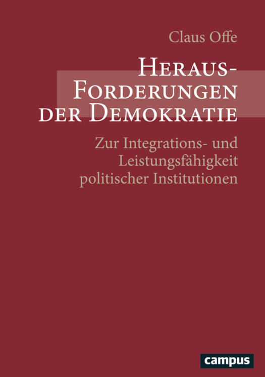 Der Band enthält Offes wichtigste Beiträge der letzten 20 Jahre zur Demokratietheorie. Darin geht es um die Herausforderungen einer "liberalen", auf autonomer Entscheidung beruhenden staatlichen Ordnung an individuelle und kollektive Akteure, aber auch darum, inwiefern die Demokratie selbst durch soziale Entwicklungen und durch institutionelle Schwächen herausgefordert und gefährdet ist. Die in der jeweiligen Originalsprache (Deutsch / Englisch) zusammengestellten Studien zeigen darüber hinaus, welche Optionen für institutionelle Neuerungen bestehen und welche Probleme der Versuch, Institutionen "neu zu bauen", birgt.