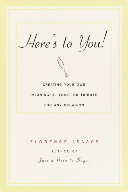 Fear no more. The bestselling author of Just a Note to Say… is back with Here’s to You!, an invaluable guide to giving meaningful, personal toasts and tributes on any occasion, including: weddings, graduations, anniversaries, birthdays, holidays, roasts, retirements, promotions, award ceremonies, office gatherings, professional anniversaries