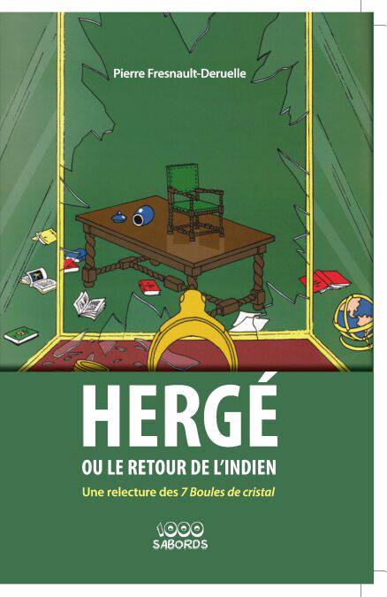 Les 7 Boules de cristal. La « bonne » lecture de cet album, retenu pour son intrigue, ne peut être qu’une « seconde » lecture. Il faut reprendre lentement le récit de cet album exemplaire, pour découvrir tout ce qu’on n’a pas vu. On s’aperçoit, de fait, que la ligne « descendante » de la storia, le long de laquelle on a d’abord dévalé, mérite bien plus que la seule attention portée aux aventures des héros. Mille détails lestent la fable d’un poids symbolique qui, distillés au gré des séquences, font de la trame narrative un vaste ensemble de signes au lecteur qu’on avait mal perçus. Le résumé de l’album, si bien établi soit-il, ne peut prendre en charge « ce qui conte » vraiment : la contamination de l’enquête (parfois clownesque) par la quête (dramatique), comme celle de l’expliqué par l’inexplicable. En décrivant les images d’Hergé (ici, accompagnées d’illustrations « adjacentes »), Pierre Fresnault-Deruelle s’est vite persuadé que le détail de bien des vignettes, loin de servir au seul établissement des décors, pouvait être relié au dessein général de l’artiste.