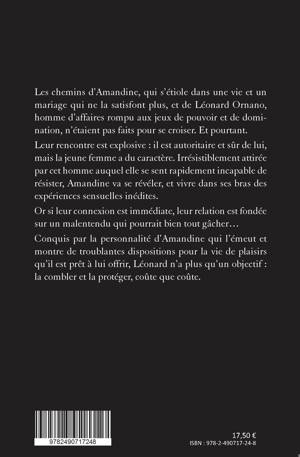 Les chemins d’Amandine, qui s’étiole dans une vie et un mariage qui ne la satisfont plus, et de Léonard Ornano, homme d’affaires rompu aux jeux de pouvoir et de domination, n’étaient pas faits pour se croiser. Et pourtant.Leur rencontre est explosive : il est autoritaire et sûr de lui, mais la jeune femme a du caractère. Irrésistiblement attirée par cet homme auquel elle se sent rapidement incapable de résister, Amandine va se révéler, et vivre dans ses bras des expériences sensuelles inédites.Or si leur connexion est immédiate, leur relation est fondée sur un malentendu qui pourrait bien tout gâcher…Conquis par la personnalité d’Amandine qui l’émeut et montre de troublantes dispositions pour la vie de plaisirs qu’il est prêt à lui offrir, Léonard n’a plus qu’un objectif : la combler et la protéger, coûte que coûte.