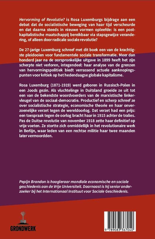 Hervorming of Revolutie? is Rosa Luxemburgs bijdrage aan een debat dat de socialistische beweging van haar tijd verscheurde en dat daarna steeds in nieuwe vormen opleefde: is een post-kapitalistische maatschappij bereikbaar via stapsgewijze verandering, of alleen door radicale sociale revolutie?