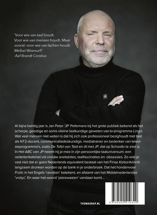 In Het ABC van JP neemt hij je mee in zijn persoonlijke taaluniversum: een rariteitenkabinet vol vrolijke anekdotes, taalfascinaties en -obsessies. Zo wist u vast niet dat er geen Nederlands equivalent bestaat van het Finse Kalsarikännit: langzaam dronken worden op de bank in je onderbroek. En dat het hondenvoer
