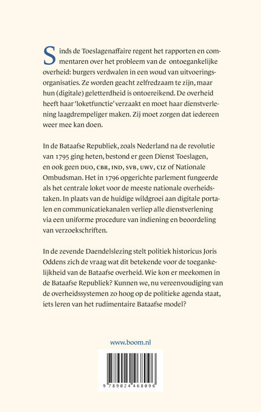 In de zevende Daendelslezing stelt politiek historicus Joris Oddens zich de vraag wat dit betekende voor de toegankelijkheid van de Bataafse overheid. Wie kon er meekomen in de Bataafse Republiek? Kunnen we, nu vereenvoudiging van de overheidssystemen zo hoog op de politieke agenda staat, iets leren van het rudimentaire Bataafse model?