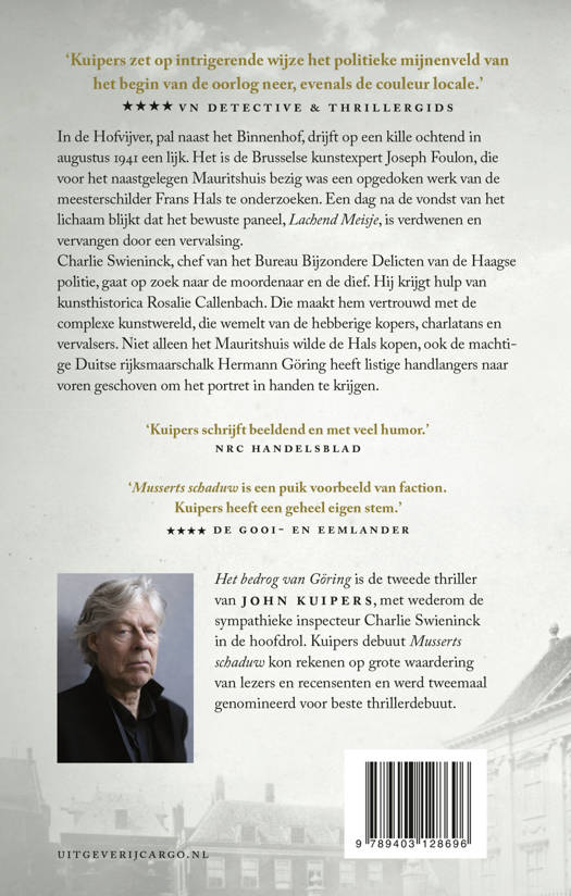 Charlie Swieninck, chef van het Bureau Bijzondere Delicten van de Haagse politie, gaat op zoek naar de moordenaar en de dief. Hij krijgt hulp van kunsthistorica Rosalie Callenbach. Die maakt hem vertrouwd met de complexe kunstwereld, die wemelt van de hebberige kopers, charlatans, vervalsers en kenners. Niet alleen het Mauritshuis wilde de Hals kopen, ook de machtige Duitse rijksmaarschalk Hermann Göring heeft listige handlangers naar voren geschoven om het portret in handen te krijgen.