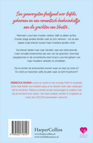 De brieven leiden haar naar Venetië, naar een betoverende maar vervallen boekwinkel aan een van de grachten. Eenmaal aangekomen in de romantische stad hoopt Luna het geheim van haar moeders verleden te ontrafelen.
