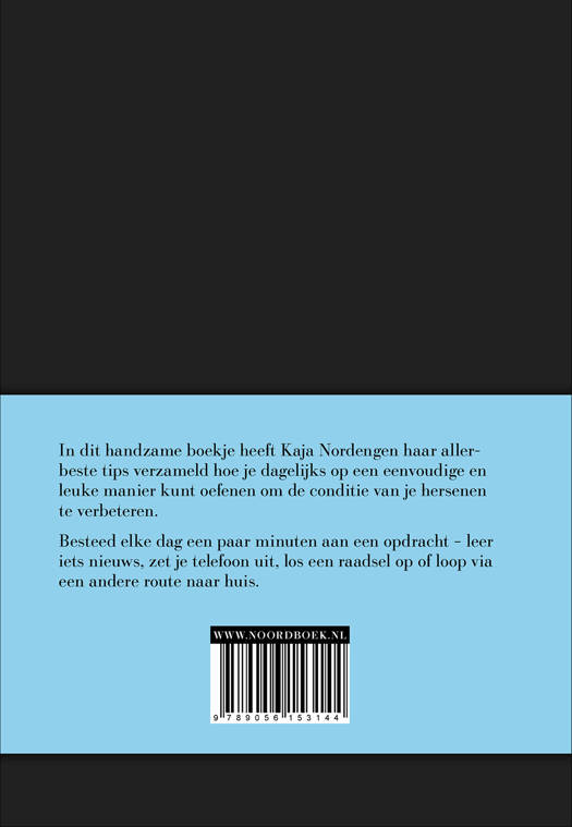 In dit handzame boekje heeft Kaja Nordengen haar allerbeste tips verzameld hoe je dagelijks op een eenvoudige en leuke manier kunt oefenen om de conditie van je hersenen te verbeteren. Besteed elke dag een paar minuten aan het doen van een opdracht – leer iets nieuws, zet je telefoon uit, los een IQ-raadsel op of loop een andere route naar huis. Gun je hersenen een betere gezondheid. Dit dagboek is niet jaarafhankelijk en je kunt op elk moment beginnen.