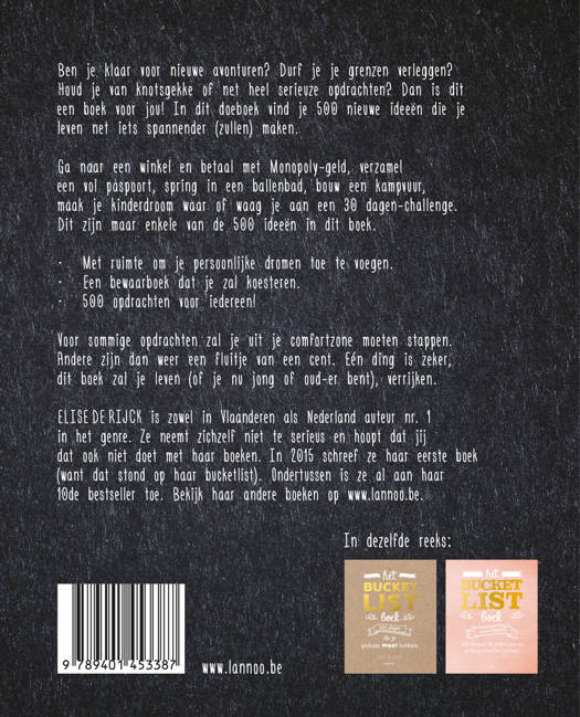 Ben je klaar voor nieuwe avonturen? Durf je je grenzen verleggen? Houd je van knotsgekke of net heel serieuze opdrachten? Dan is dit een boek voor jou! In dit doeboek vind je 500 nieuwe ideeën die je leven net iets spannender (zullen) maken.