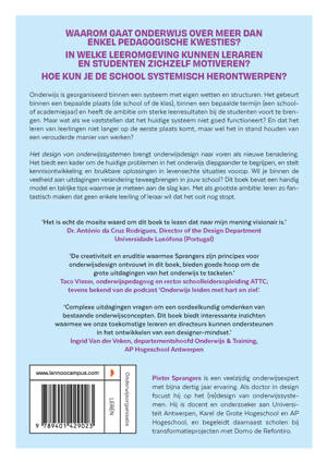 'Complexe uitdagingen vragen om een oordeelkundig omdenken van bestaande onderwijsconcepten. Dit boek biedt interessante inzichten waarmee we onze toekomstige leraren en directeurs kunnen ondersteunen in het ontwikkelen van een designer-mindset.'