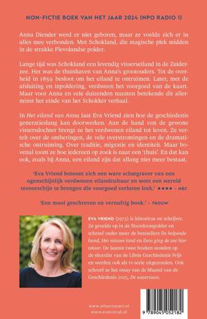In Het eiland van Anna laat Eva Vriend zien hoe de geschiedenis generaties lang kan doorwerken. Aan de hand van de gewone vissersdochter brengt ze het verdwenen eiland tot leven. Ze vertelt over de ontberingen, de vele overstromingen en de dramatische ontruiming. Over wortels, migratie en identiteit. Maar bovenal gaat het over hoe iedereen op zoek is naar een ‘thuis’. En dat kan ook, zoals bij Anna, een eiland zijn dat allang niet meer bestaat.