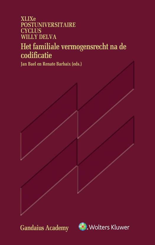 In de 49ste Postuniversitaire cyclus Willy Delva is het nieuwe familiaal vermogensrecht onder de loep genomen. In het verslagboek van deze Willy Delva cyclus worden volgende onderwerpen behandeld: de huwelijksvoordelen (prof. dr. Alain Laurent Verbeke) en de wettelijke en feitelijke samenwoning (dr. Lynn De Schrijver), het voorwerp van de nalatenschap (prof. dr. Charlotte Declerck) en de erfrechtelijke gevolgen van schenkingen (prof. dr. Renate Barbaix), familiaalvermogensrechtelijke, conventionele en vennootschapsrechtelijke regelingen inzake familiebedrijven (prof. dr. Johan Du Mongh) en de fiscaalrechtelijke aandachtspunten bij de overdracht van een familiebedrijf (em. prof. dr. Nicolas Geelhand de Merxem en prof. dr. Ayfer Aydogan), de erfovereenkomsten (prof. dr. Jan Bael) en de echtscheiding door onderlinge toestemming (prof. dr. Gerd Verschelden), het IPR (em. prof. dr. Christian De Wulf) en de gerechtelijke vereffening-verdeling (prof. dr. Wannes Vandenbussche), evenals een evaluatie van het nieuwe familiaal vermogensrecht door em. prof. dr. Hélène Casman, die bij de totstandkoming van het nieuwe familiaal vermogensrecht een zeer belangrijke rol heeft gespeeld en die de ontwerpteksten voor de codificatie heeft geschreven.