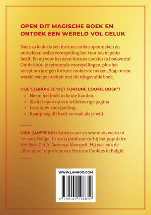 Ontdek 200 inspirerende voorspellingen, plus het recept om je eigen fortune cookies te maken. Stap in een wereld van positiviteit met dit rijkgevulde boek.
