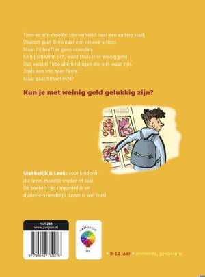 ‘Ik ga met mijn vader naar Parijs,’ zegt Timo tegen zijn klasgenoten. Dat is helemaal niet waar, maar hij flapte het eruit. Bij Timo thuis hebben ze niet zoveel geld, maar dat durft hij tegen niemand te vertellen. Kan Timo zijn geheim bewaren of komt er toch iemand achter? Spannend verhaal op laag AVI-niveau (AVI M4) voor kinderen van 9 tot 12 jaar. De serie ‘Makkelijk & Leuk’ is speciaal gemaakt voor kinderen die lezen moeilijk vinden of saai. Zo krijgen zij weer plezier in lezen.