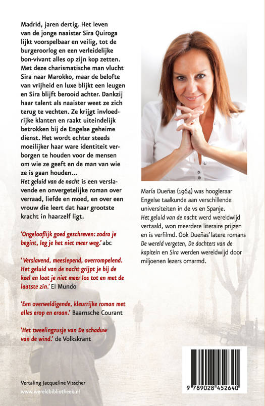 Het geluid van de nacht is het onvergetelijke verhaal over Sira Quiroga die met vallen en opstaan leert dat ze alleen kan vertrouwen op haar eigen kracht. Het voert je door de even kleurrijke als aangrijpende geschiedenis van Spanje, Marokko en Portugal en de Tweede Wereldoorlog. Het geluid van de nacht is een verslavende pageturner met een onweerstaanbare sfeertekening en een superieure cast van personages.