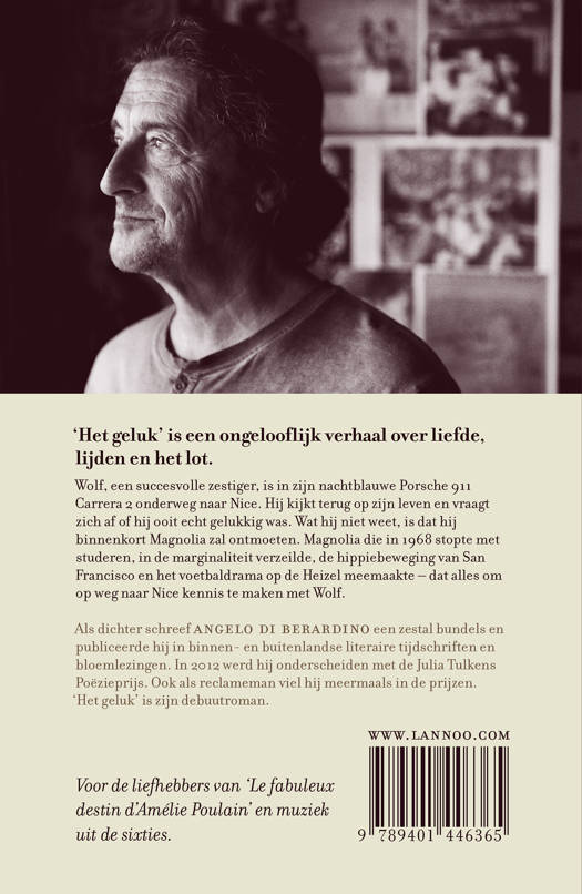 Wolf, een succesvolle zestiger, is in zijn nachtblauwe Porsche 911 Carrera 2 onderweg naar Nice. Hij kijkt terug op zijn leven en vraagt zich af of hij ooit echt gelukkig was. Wat hij niet weet, is dat hij binnenkort Magnolia zal ontmoeten. Magnolia, die in 1968 stopte met studeren, in de marginaliteit verzeilde, de hippiebeweging van San Francisco en het voetbaldrama op de Heizel meemaakte - dat alles om op weg naar Nice kennis te maken met Wolf. Het geluk is een ongelofelijk verhaal over liefde, lijden en het lot.