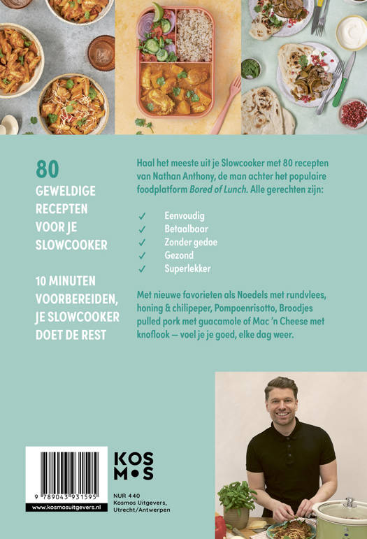 Met de 80 recepten van Nathan Anthony, de man achter het populaire foodplatform Bored Of Lunch doet de slowcooker het werk, terwijl jij verder gaat met je drukke dag. Zo staat er bij terugkomst een heerlijke, verantwoorde en zelfgemaakte maaltijd klaar.