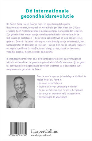 Het goede hart van Dr. Torkil Færø is dé Scandinavische gezondheidsbestseller. Dr. Torkil Færø is een Noorse huis- en spoedeisendehulparts, documentairemaker, fotograaf en wereldreiziger. Met meer dan 25 jaar ervaring heeft hij tienduizenden mensen geholpen om gezonder te leven. Zijn geheim? Het meten van je hartslagvariabiliteit – de variatie in de tijd tussen je hartslagen – die precies aangeeft wat er in je zenuwstelsel gebeurt. Door dit in kaart te brengen – met behulp van je smartwatch, een hartslagmeter of desnoods je telefoon – kun je zien hoe je lichaam reageert op negen specifieke (stress)factoren: slaap, stress, sport, actieve rust, voeding, alcohol, ziekte, gewicht en nicotine. In Het goede hart brengt dr. Færø hartslagvariabiliteit op overtuigende wijze in verband met de grootste gezondheidsrisico's van onze tijd en geeft hij eenvoudige en toegankelijke adviezen waarmee jij je levensstijl kunt aanpassen om gezonder te leven. Door je aan te sporen je hartslagvariabiliteit te meten helpt dr. Færø je: - je slaap te verbeteren - jouw manier van beweging te vinden - de eerste tekenen van ziekte te herkennen - burn-out en vermoeidheid te bestrijden - ontstekingen te voorkomen