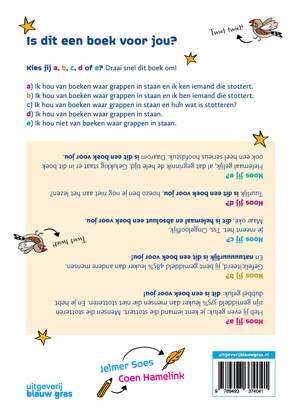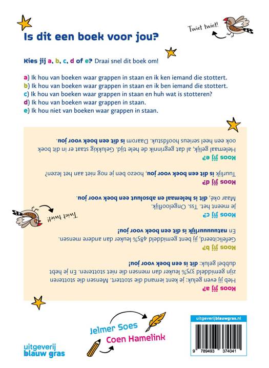 Een blijmoedig, ruim geïllustreerd nonfictieboek voor kinderen van groep 6 tot en met groep 8. Voor stotterende kinderen, hun klasgenoten, vrienden en familieleden, maar ook voor iedereen die gewoon van grappen, cartoons, bijzondere weetjes en heldere uitleg houdt.