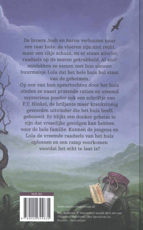 De broers Josh en Aaron Peshik ontdekken al snel dat hun nieuwe huis met schuine vloeren bol staat van de geheimen. Wanneer ze het dagboek vinden van F.T. Tilton, de briljante maar krankzinnig geworden uitvinder die het huis heeft gebouwd, leren ze een donker geheim kennen dat vreselijke rampspoed kan betekenen voor hun hele familie. Kunnen de broers de raadsels van het huis oplossen en een ramp voorkomen voordat het te laat is?