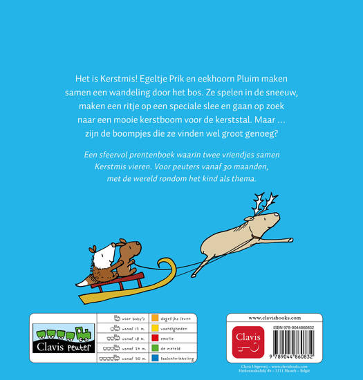 Een sfeervol prentenboek waarin twee vriendjes samen Kerstmis vieren. Voor peuters vanaf 30 maanden, met de wereld rondom het kind als thema.