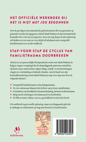 Voor wie nog dieper in dit onderwerp wil duiken en voor eens en voor altijd wil afrekenen met overgeërfd familietrauma is er nu het officiële werkboek: 'Het is (nog steeds) niet met jou begonnen'. Alsof je in een een-op-een therapeutische sessie met Mark Wolynn zit krijg je allerlei vragen voorgelegd die de dieperliggende patronen in je leven ontrafelen. Op basis van je antwoorden volgen uitleg en toelichting, schrijf- en invuloefeningen, lichaamsgerichte oefeningen, doordenkvragen en helende rituelen. Aan de hand van zijn kerntaalbenadering neemt Mark Wolynn je stap voor stap mee door de volgende thema's:
