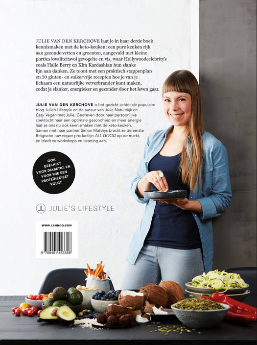 Julie Van den Kerchove laat je in haar derde boek kennismaken met de keto-keuken: een pure keuken rijk aan gezonde vetten en groenten, aangevuld met kleine porties kwaliteitsvol gevogelte en vis, waar Hollywoodcelebrity's zoals Halle Berry en Kim Kardashian hun slanke lijn aan danken. Ze toont met een praktisch stappenplan en 70 gluten- en suikervrije recepten hoe je van je lichaam een natuurlijke vetverbrander kunt maken, zodat je slanker, energieker en gezonder door het leven gaat.