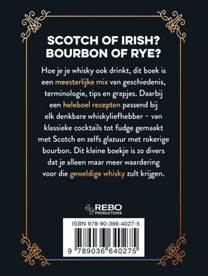 Scotch of Irish? Bourbon of Rye? Hoe je je whisky ook drinkt, dit boek is een meesterlijke mix van geschiedenis, terminologie, tips en grapjes. Daarbij een heleboel recepten passend bij elk denkbare whiskyliefhebber - van klassieke cocktails tot fudge gemaakt met Scotch en zelfs glazuur met rokerige Bourbon. Dit kleine boekje is zo divers dat je alleen maar meer waardering voor die geweldige whisky zult krijgen.