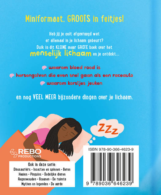 Heb jij je ooit afgevraagd wat er allemaal in je lichaam gebeurt? Duik in dit kleine maar grote boek over het menselijk lichaam en je ontdekt waarom bloed rood is, waarom korstjes jeuken en nog veel meer bijzondere dingen over je lichaam.