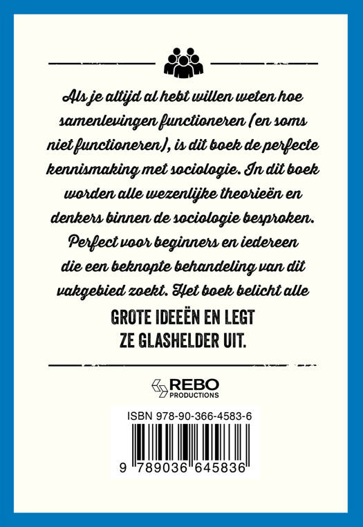 Als je altijd al hebt willen weten hoe samenlevingen functioneren (en soms niet functioneren), is dit boek de perfecte kennismaking met sociologie. In dit boek worden alle wezenlijke theorieën en denkers binnen de sociologie besproken. Perfect voor beginners en iedereen die een beknopte behandeling van dit vakgebied zoekt. Het boek belicht alle grote ideeën en legt ze glashelder uit.