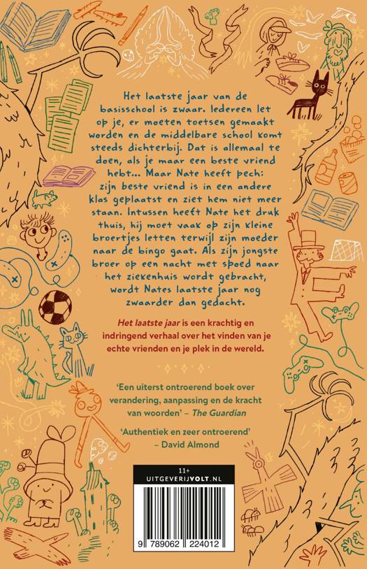 Het laatste jaar is een krachtig en indringend verhaal over het vinden van je echte vrienden en je plek in de wereld, met sfeervolle zwart-witillustraties van Joe Todd-Stanton.