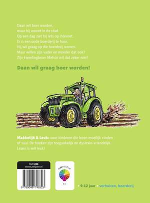 Wat als je broer goed is in álles? Sporten, muziek, school … Melvin kan alles. Maar Daan heeft een droom: hij wil boer worden. Hij zet alles op alles om zijn droom uit te laten komen, maar gaat het hem lukken? Dit aansprekende boek op AVI E4 is voor kinderen van 9-12 jaar in de serie ‘Makkelijk & Leuk’, speciaal voor kinderen die lezen moeilijk vinden of saai. Zo krijgen zij weer plezier in lezen. Dyslexievriendelijk!