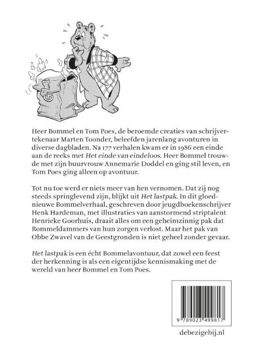 In dit nieuwe Bommel-verhaal draait alles om een geheimzinnig pak dat ont-last. Maar het pak van Obbe Zwavel van de Geestgronden is niet geheel zonder gevaar. Het zal niemand verbazen dat Heer Bommel dit als eerste aan den lijve ondervindt. In plaats van dat het pak verlicht, ontstaan er rampen. Hoog tijd dus dat Tom Poes een list verzint, maar waar is hij? Kortom, Het lastpak is een écht Bommel-avontuur, dat zowel een feest der herkenning is als een frisse, eigentijdse kennismaking met de wereld van heer Bommel en Tom Poes.