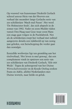 Eenzelfde werkwijze ligt ten grondslag aan het titelverhaal, ‘Het leven is snel genoeg’, dat een complement vindt in opnieuw een serie van zes schilderijen van Diederik Gerlach, ‘Eile mit Weile’. Tegen de achtergrond van het Duitse Wirtschaftswunder en de Koude Oorlog zoeken Frans en Adèle, allebei Nederlanders met Duitse wortels, naar liefde en geluk.