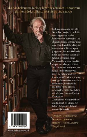 Is de mens nu nog niet af? Na miljoenen jaren evolutie is er nog steeds veel te wensen over. Survival of the sukkels. En dat is maar goed ook. Onvolmaaktheid is juist onze charme. De verlegen jongeman, het struikelende kind en dat spleetje tussen de tanden stemmen mild. Volmaaktheid is de dood in de pot en behelpen is leven. Wat moet een mens met een ideale schoonzoon? Wat moet de natuur met een ideale soort? Het leven wordt voortgedreven door onvolkomenheden, hoe hard de moderne mens die ook probeert te ontkennen door middel van fitness of botox. Koester ze. Zoals alleen Midas Dekkers dat kan legt hij uit dat het tekort hetgeen is dat ons menselijk maakt.