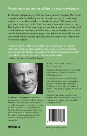 In dit scherpzinnige boek vol droge humor dringt Theodore Dalrymple diep door in het gedachteleven van moordenaars om te ontdekken waarin ze verschillen van de rest van de mensheid. Als gevangenispsychiater en arts, eerst in Oost-Londen en later in het centrum van Birmingham, heeft hij meer Engelse moordenaars gekend en behandeld dan de meesten van ons ooit zullen zien, zelfs in tv-series. Aan de hand van die fascinerende ontmoetingen toont hij ons de kloof die hen van ons scheidt en laat hij zien op welke punten we meer op ze lijken dan we willen toegeven.De pers over het werk van Dalrymple: 'Dalrymple [vindt] dat we wel iets harder mogen worden – vooral voor onszelf.' NRC Handelsblad 'In de nietsontziende manier waarop Dalrymple zich tegen de gemakzuchtige aannames van het correct denkende establishment keert, lijkt hij op George Orwell.' Bas Heijne, winnaar P.C. Hooft-prijs 2017 'Dalrymple kent geen genade voor de tijdgeest. Zijn cultuurkritiek is een lust om te lezen, en bovendien heeft hij gelijk.' Beatrijs Ritsema